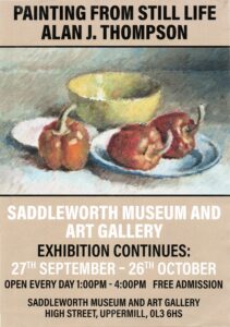 Saddleworth Museum welcomes Alan’s new exhibition “Painting from Still Life”. This exhibition will be with us from Saturday 27th September to Sunday 26th October.