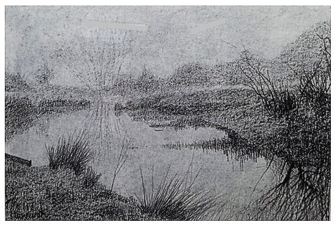 “Pool, Medlock Vale, Daisy Nook” Pencil, 25(h) x 38(w) cm. A signed original by Russel Howarth. As framed by the artist. Catalogue no. 05746.